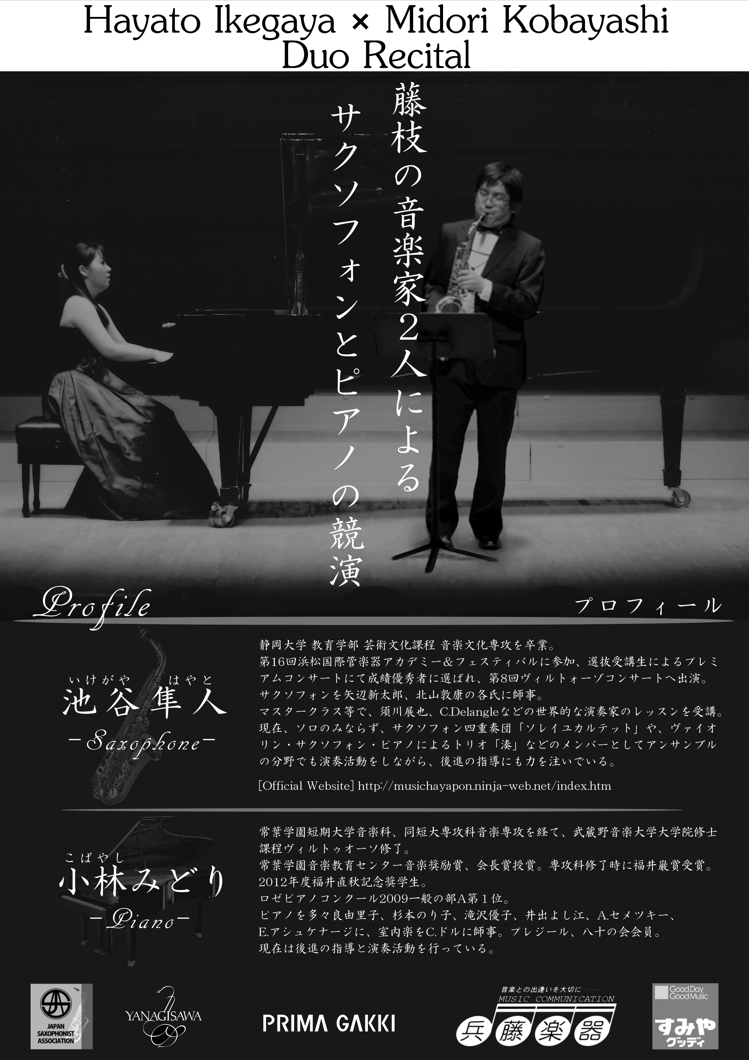 現在、ピアノ伴奏をしながらサクソフォンの演奏活動および後進の指導にあたる。