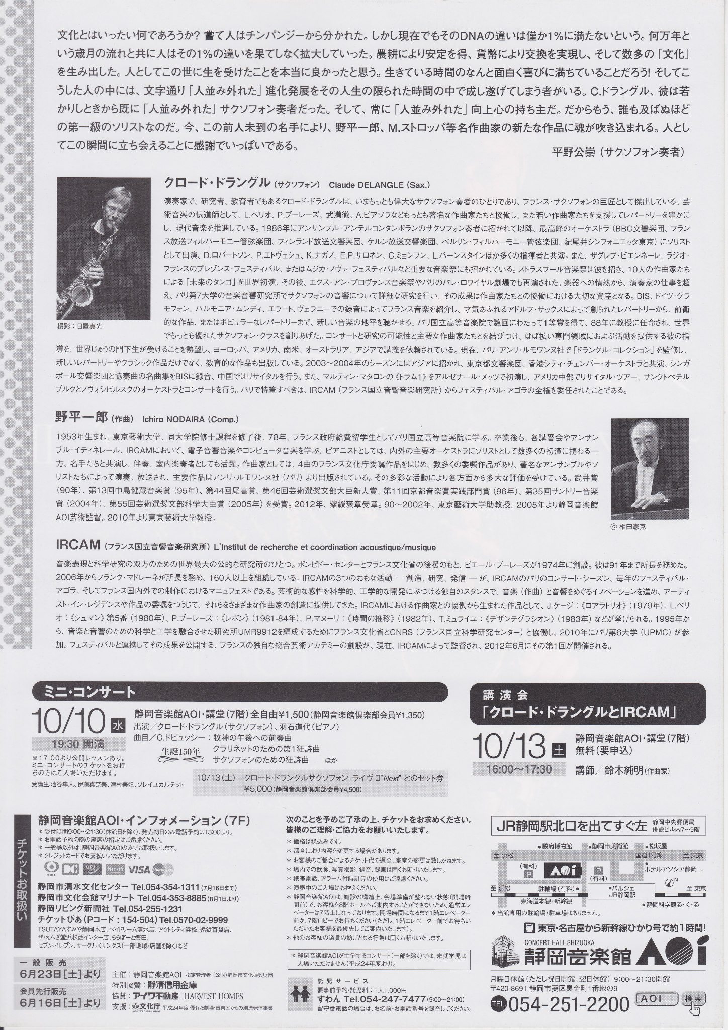 曲目は現代音楽ばかりですが、我々の想像力をはるかに超 えたものだと思います!何しろ最先端ですからね、今ある 我々の音楽の概念を破っていかなくては新しいものは出来 ません。