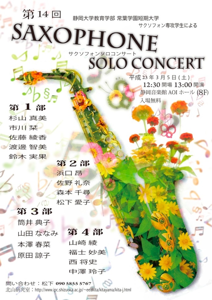 静岡大学と常葉学園短期大学のサクソフォン専攻生による発表会です。